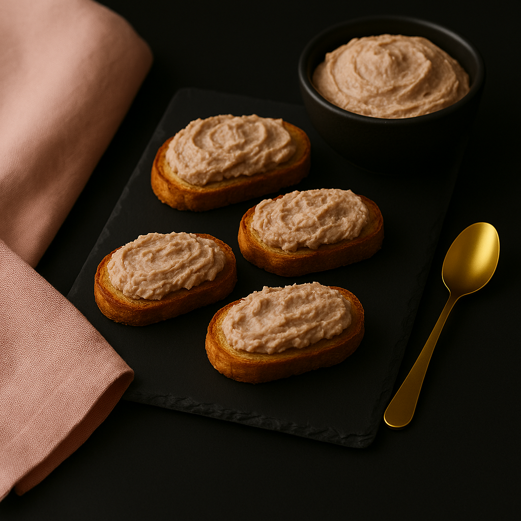 Serve this mousse on Maison Fayard toast , accompanied by black olives or onion confit . Its taste pairs perfectly with fruity and spicy notes as an aperitif.